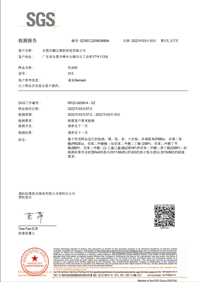 和鵬達(dá)塑膠科技有限公司合作很長(zhǎng)一段時(shí)間了,他們的產(chǎn)品質(zhì)量好,服務(wù)到位,且原材料都通過SGS測(cè)試符合歐盟REACH,PaHS、ROHS及無鹵指令,備有美國FDA級(jí)食品接觸規(guī)格物料,和他們合作完全沒有后顧之憂!